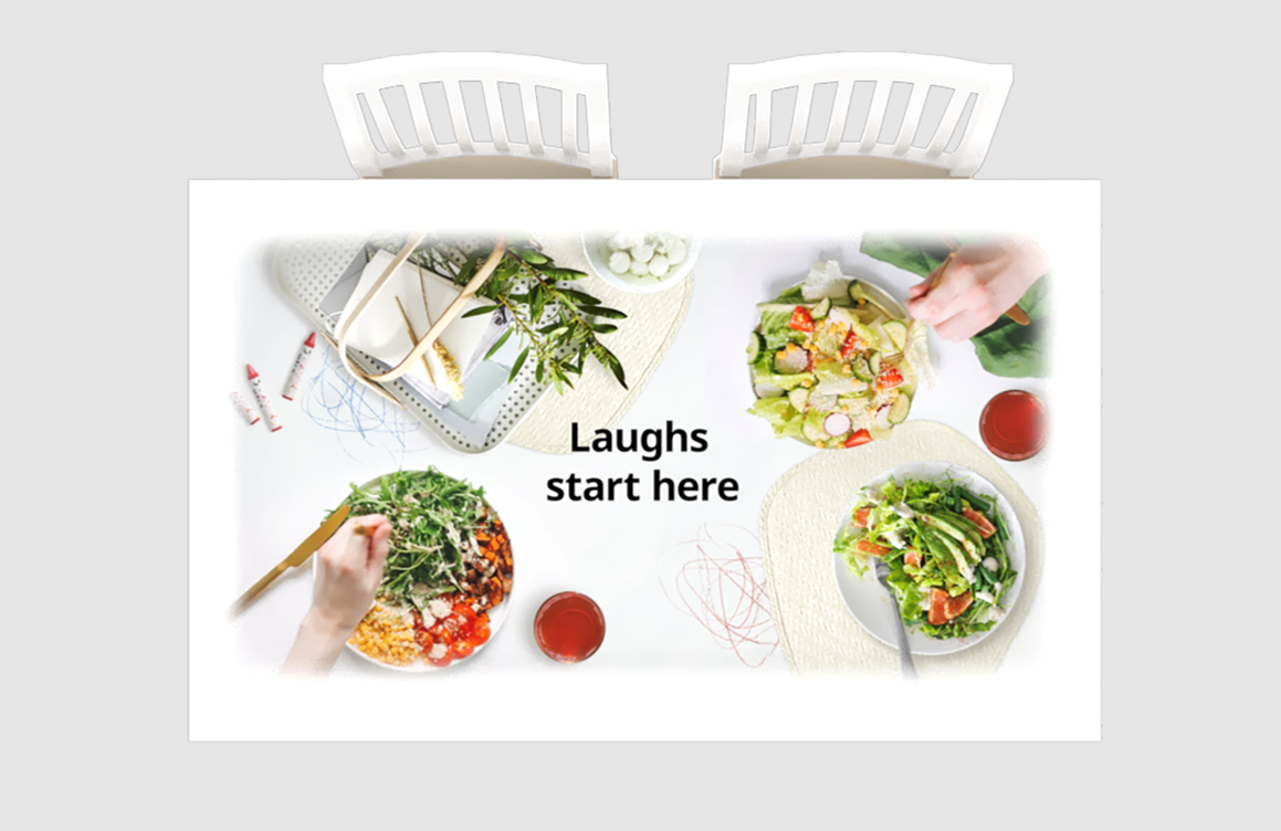 eadlines reflect the main message of the overall Complete cooking & eating narrative,tying the activities together. The prjection template is designed with simple visual layers, so its easy to update by adding new products without needing to change the motion content itself, keeping the projection relevant.