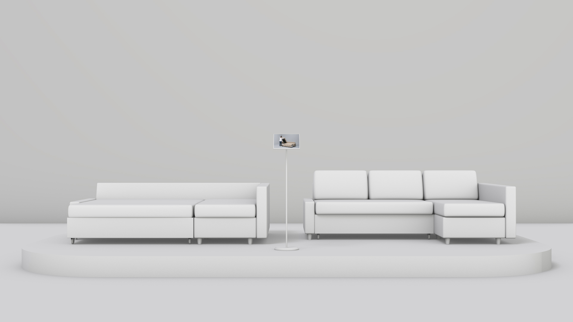 This solution features a small 13″ inch screen on a stand that displays a short video guide, walking customers through the steps to extend tables with prioritised extension mechanisms.