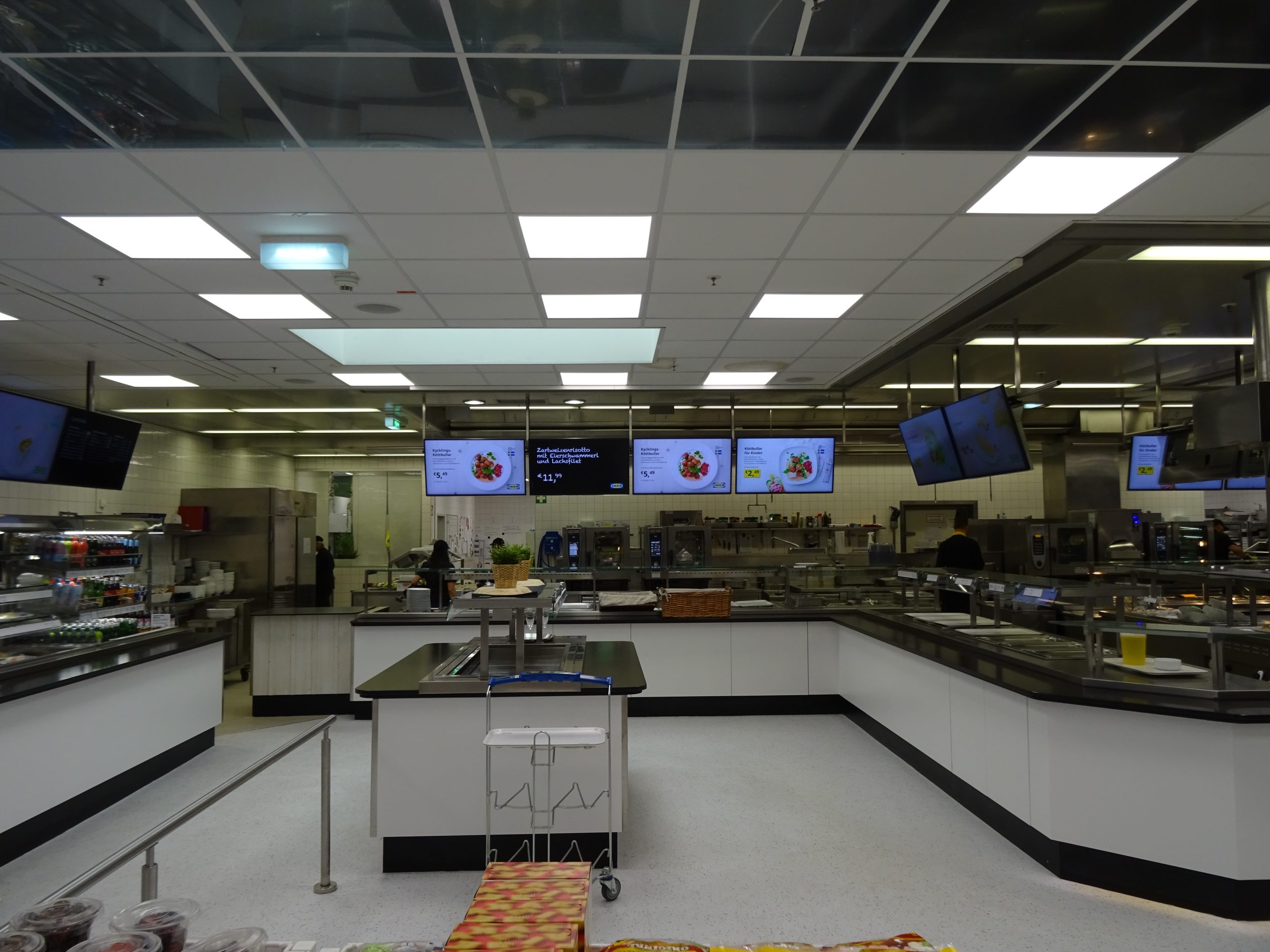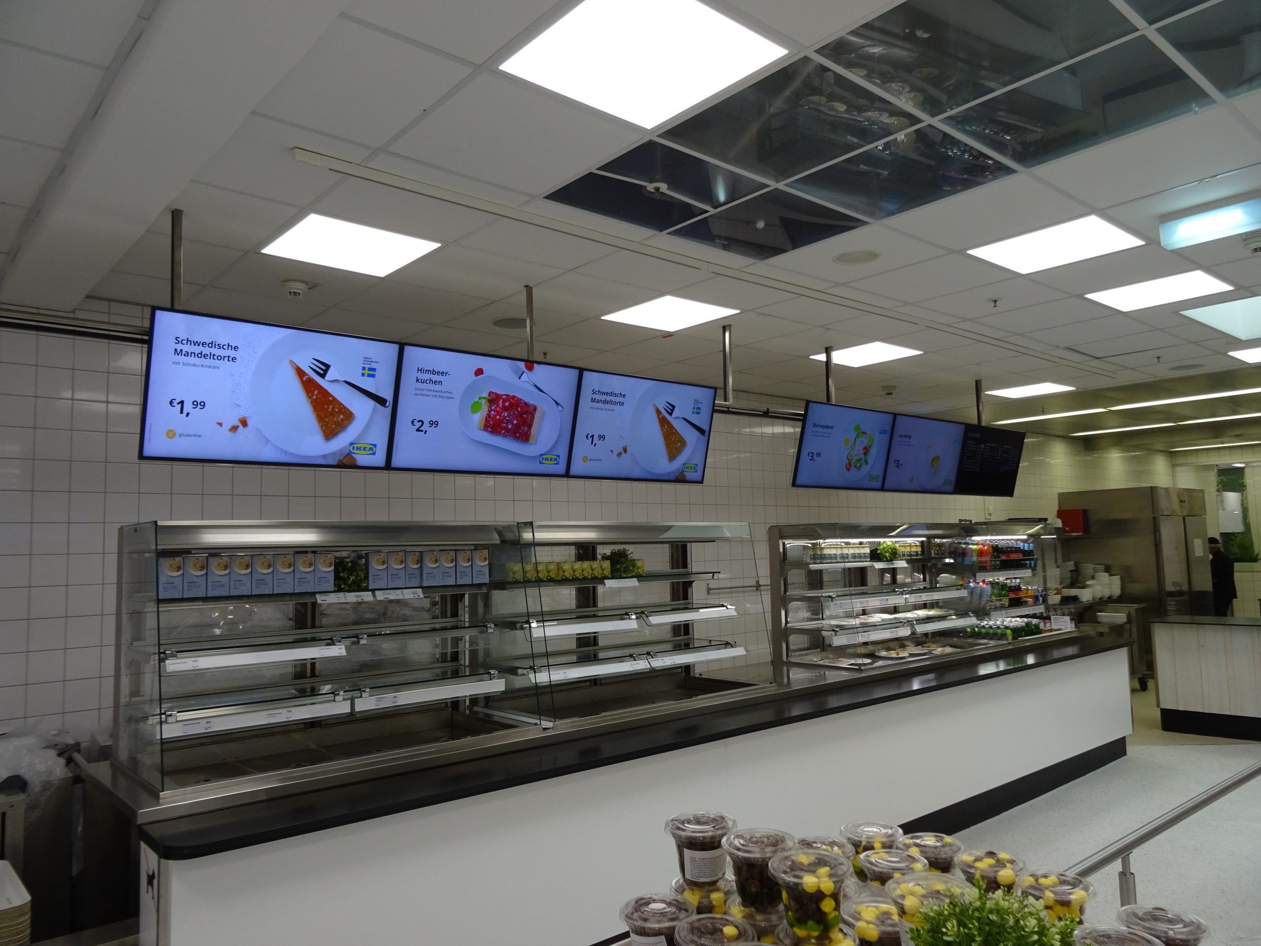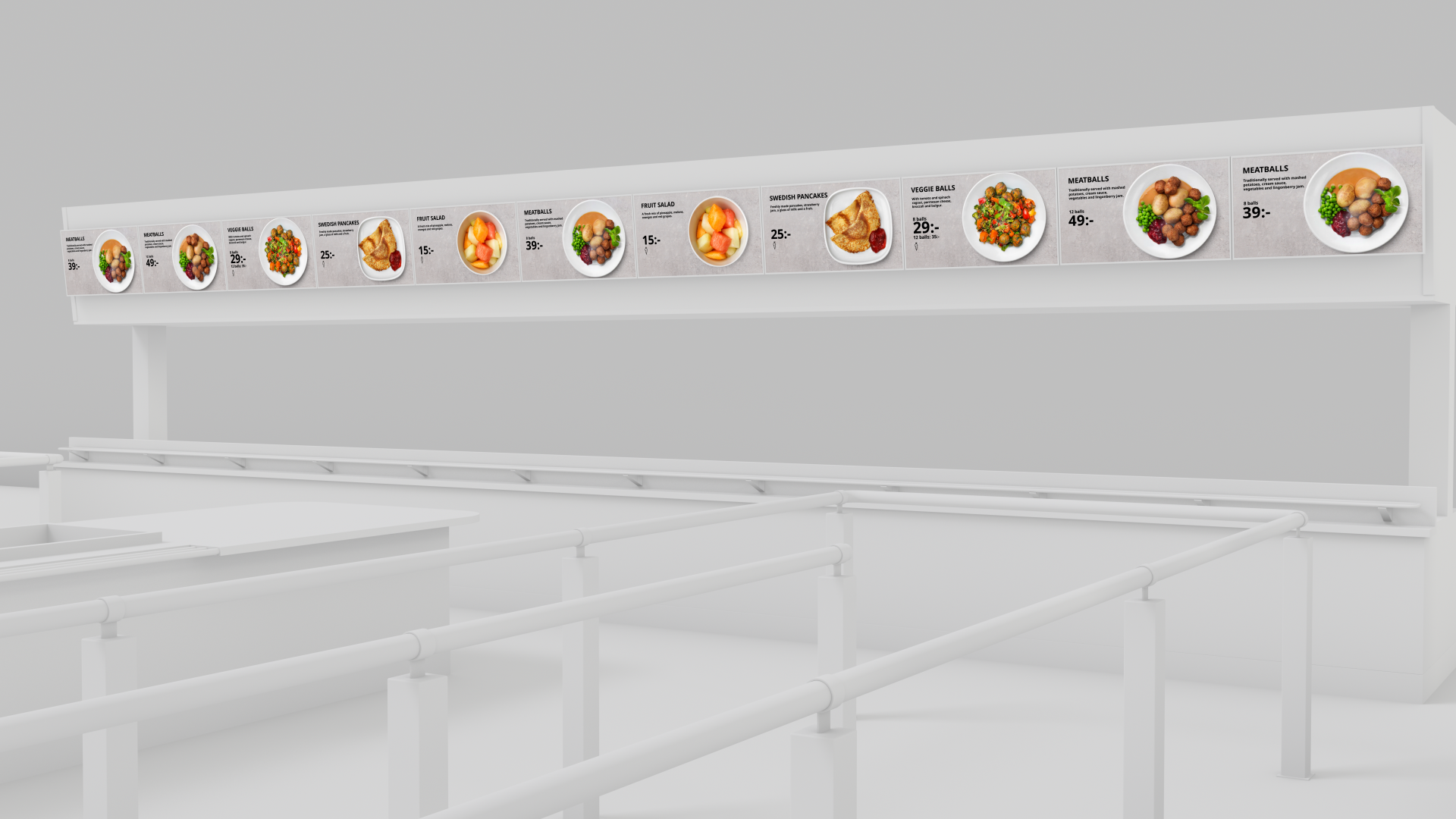 Placed from the ceiling in connection with the serving line.
