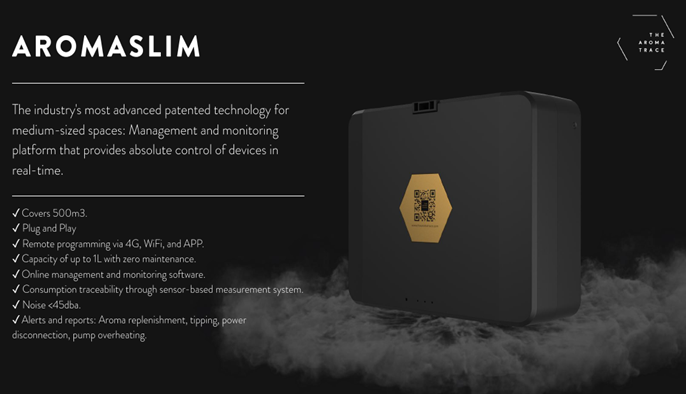 The scent solution is a self-install solution. The machine connects to power and wifi. To connect to wifi and to make the settings for the machine, the user needs to use an app.