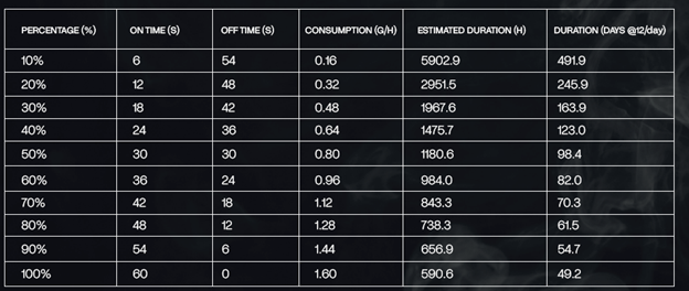 The scent machine is provided on a rental basis — there’s no hardware cost involved. Throughout the subscription period, you’ll receive everything you need for continuous scent delivery, including four bottles of 950 ml fragrance, enough to last the entire year. Each bottle is designed to provide approximately three months of fragrance at the recommended settings (50% intensity, 12 hours a day, 7 days a week) and covers up to 500m3. You can easily adjust the scent intensity, schedule, and operating times through a user-friendly mobile app, giving you full control over the fragrance experience at any time. Please note that the duration may vary slightly depending on the chosen scent — for example, coffee is a stronger fragrance and typically lasts longer. See below for approximate reference.