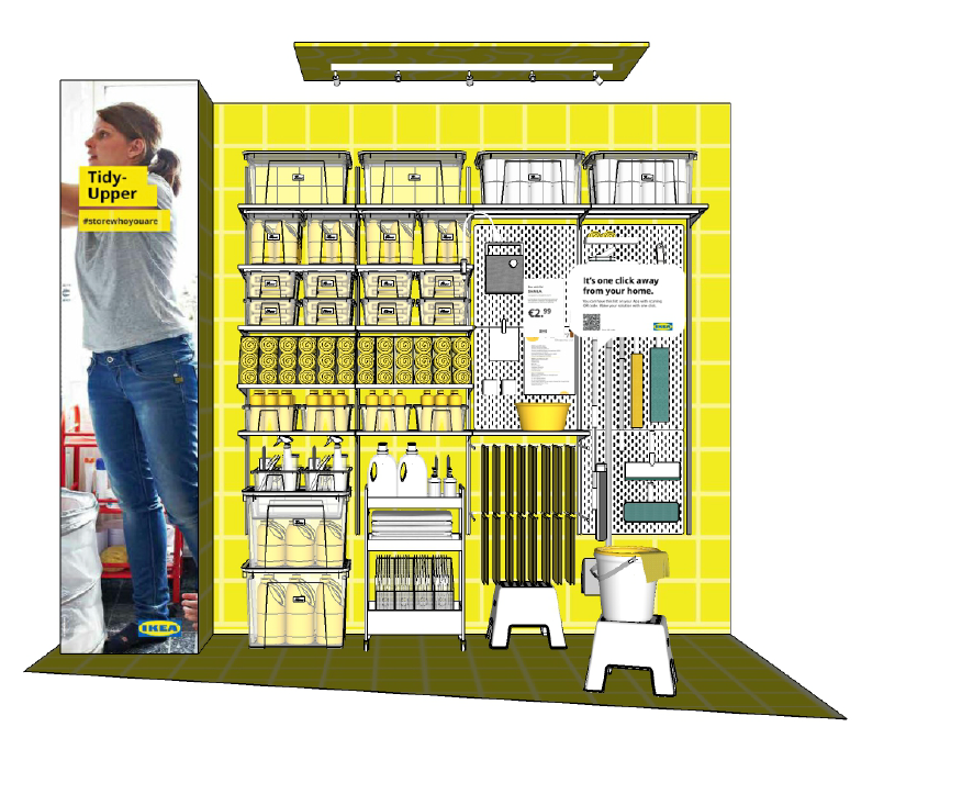 Eye-catching videos/animations on LED screens, showing the passions, activities and storage needs/solutions of real local influencers or IKEA ambassadors.