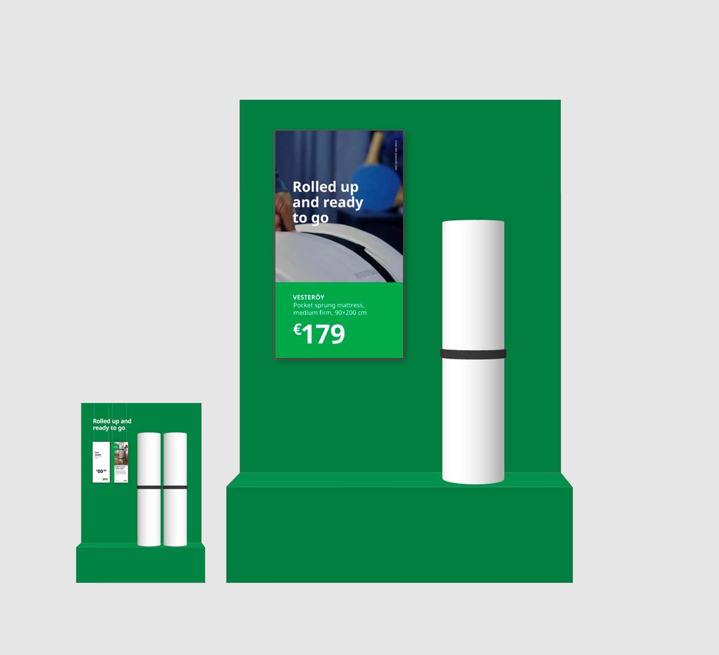 NOTE: The solution uses standard black display frame and not the white displayed in the image. For white display frame color or other colors different from black, please contact us on info.ikea@zetadisplay.com
