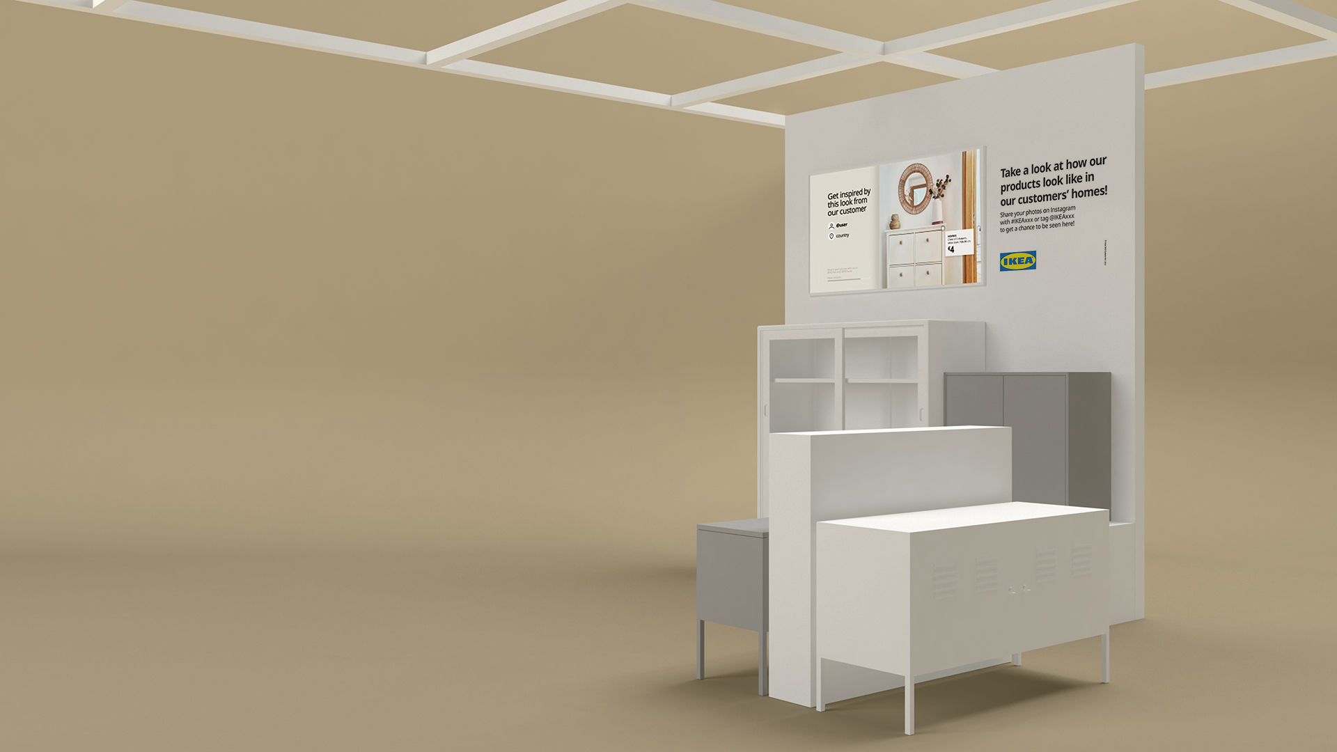 NOTE: The solution uses standard black display frame and not the white displayed in the image. For white display frame color or other colors different from black, please contact us on info.ikea@zetadisplay.com