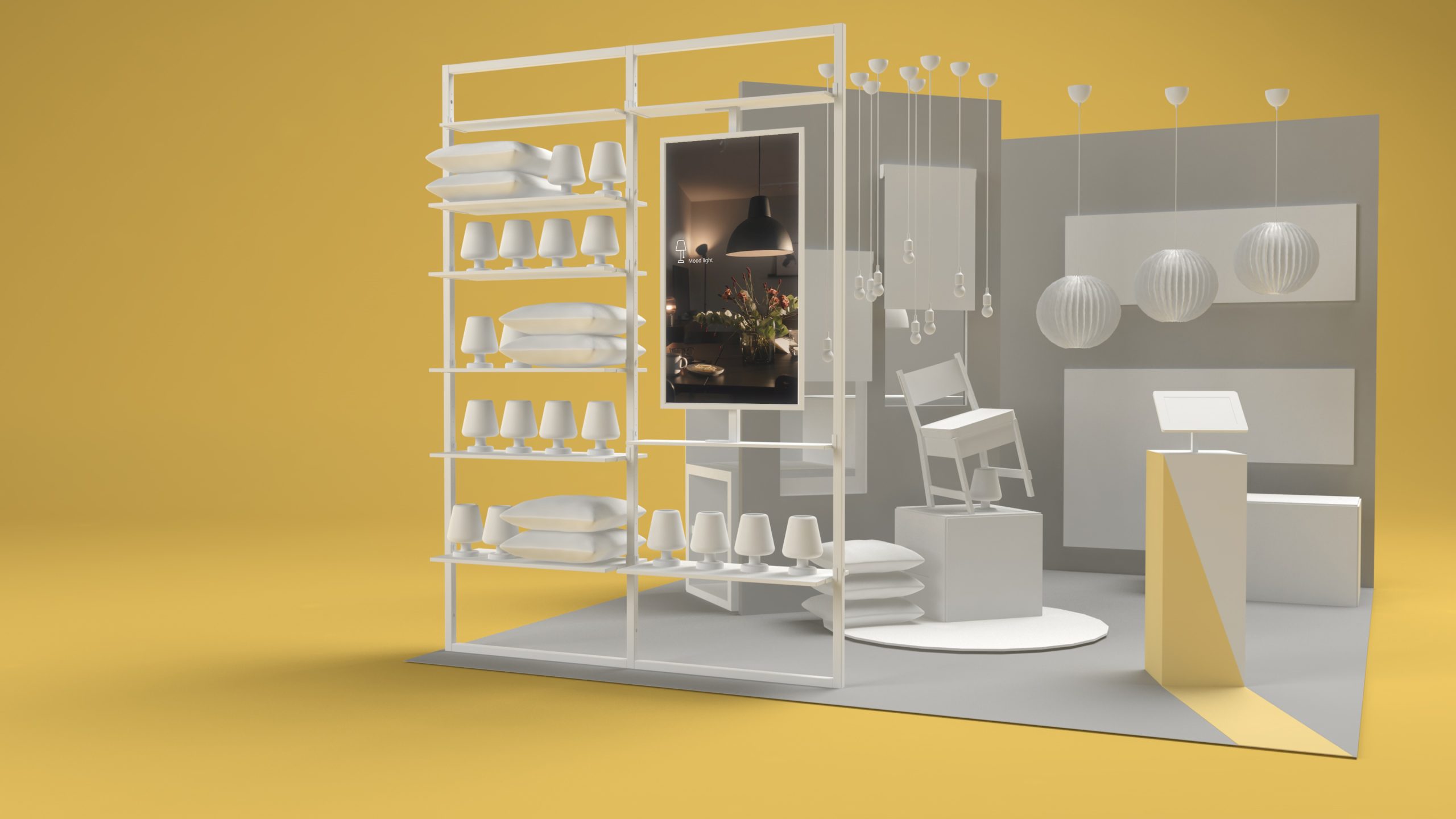 • Uses a digital screen with looping videos to educate customers about different light types;